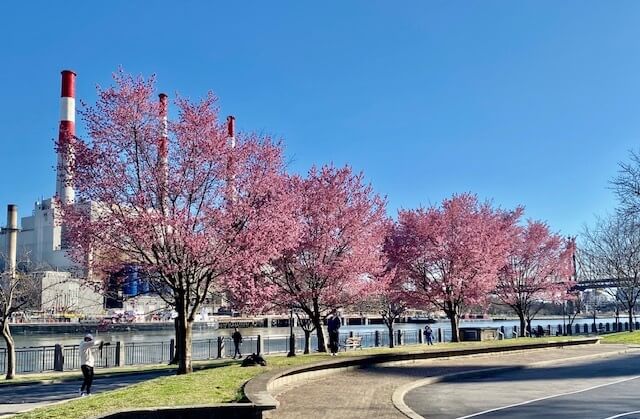 ম্যানহ্যাটেনের দিকে নদীপাড়ের যে পথ সেটা ধরেই হাঁটতে থাকলাম দক্ষিণের প্রান্তে। সারা পথ ধরে চেরী ফুলের গাছ। এপ্রিল- মে মাসে সেই গাছে ফুল ছাড়া আর কিছুই চোখে পড়ে না। নীচের পায়ে চলা পথ ছেয়ে যেতো ফুলের পাপড়িতে। নদীর ধারের পথ যেখানে আবার ওপরের মূল পথের ওপরে উঠেছে, সেখানে এখন অনেক আবাসিক উচচ্তল ভবন গড়ে উঠেছে।