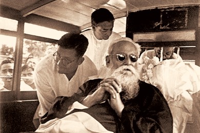 উদয়ন-এর সামনে এসে দাঁড়াল আশ্রমের মোটরগাড়ি। কবিকে যাতে সরাসরি স্ট্রেচারে করে গাড়িতে তুলে দেওয়া যায়, তাই গাড়ির পিছনের দরজা খুলে দেওয়া হয়।