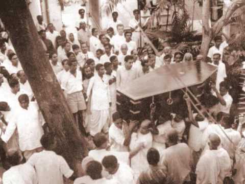 ৭ আগস্ট ১৯৪১ সাল ২২শে শ্রাবণ। ভোর হতে মোটরের আনাগোনা জোঁড়াসাকোর সরু গলিতে।নিকট আত্মিয়, বন্ধু পরিজন সব আসছে দলে দলে।পুবের আকাশ ফর্সা হলো।সাদা শাল দিয়ে ঢাকা কবির পা দু’খানির উপর চাঁপাফুল ছড়ানো।বেলা ৭টায় রামানন্দবাবু কবির খাটের পাশে দাঁড়িয়ে উপাসনা করলেন।শাস্ত্রীমশায় পায়ের কাছে বসে মন্ত্র পড়ছেন।বাইরের বারান্দায় ধীরে ধীরে মৃদু কন্ঠে কে যেন গাইছেন-কে যায় অমৃতধামযাত্রী।