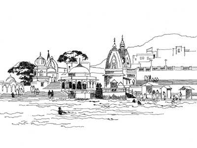 মন্দির থেকে সিঁড়ি নেমে গেছে নিচে গর্জে বয়ে যাওয়া নদী আর একটু উপরে অবস্থিত উষ্ণ প্রস্রবণ পর্যন্ত। আরেকটি রাস্তা চলে গিয়েছে লম্বা কিন্তু গোছানো একটা বাজারের পাশ দিয়ে। এই বাজারে তীর্থযাত্রীরা নানান ধরনের স্মারক বস্তু কিনতে পারেন-কবচ, দেব-দেবীর রঙিন ছবি, ইত্যাদি। এখানে আমি সস্তায় আংটি কেনার সুযোগের সদ্ব্যবহার করি, কেউ নেই এখানে আমার এই ছেলেমানুষি দেখে হাসবার। বিচিত্ররকম আংটি রয়েছে কেনার জন্য কুণ্ডলি পাকানো সাপের আকৃতি (আমার পছন্দের), লোহা ও তামার তার মুচড়ে বানানো, আবার কোনোটিতে রয়েছে দেব-দেবী, ধর্মগুরু, সাধুপুরুষদের ছবি। কোনোটারই দাম দু-তিন টাকার বেশি নয়, ফলে পকেট ভরে কিনতে পারি আমি। এসব আংটি আমি পরি না, শুধু সংগ্রহে রাখি। আমার বন্ধুদের বিশ্বাস যে আগের জন্মে আমি পাতিকাক ছিলাম। চক্চকা উজ্জ্বল জিনিসের প্রতি আকর্ষণ আমার অদম্য।